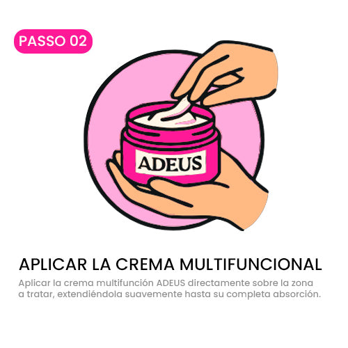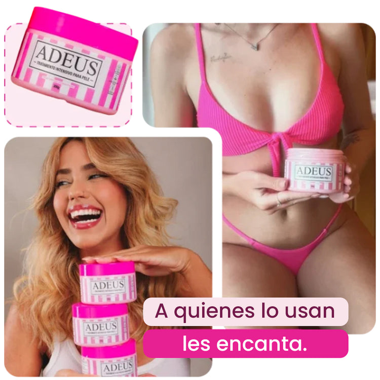 Descubre el poder de ADEUS, un tratamiento intensivo diseñado para transformar tu piel. ADEUS, con eficacia comprobada para combatir las estrías rojas y blancas, la celulitis y la flacidez, también ayuda a reducir medidas y promueve mejoras visibles en la apariencia de la piel desde la primera aplicación. Su fórmula combina ingredientes potentes y seguros capaces de nutrir, hidratar y revitalizar profundamente. ¿El resultado? Una piel más firme, suave y uniforme. Más que una simple crema, ADEUS es la opción preferida de miles de mujeres que están recuperando su autoestima y la libertad de lucir su cuerpo sin miedo.